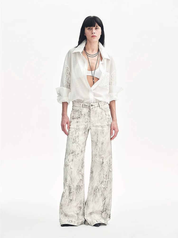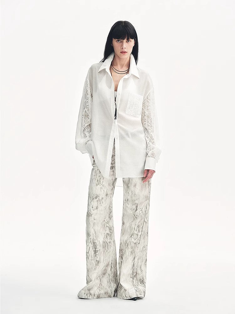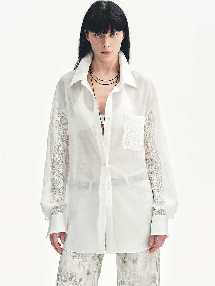 “Ideal Spring Day” Jacquard Hollow Drop Shoulder Shirt Summer