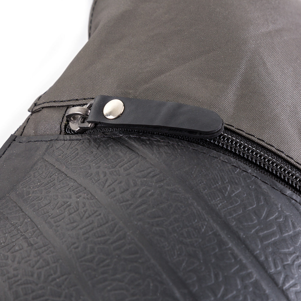 The Squad Cross Body Sling Hobo Bag is handmade using recycled rubber and reclaimed military canvas. Being lightweight, durable and water-resistant, this bohemian bag is ideal for everyday use. With an adjustable strap and an ergonomic shape, the bag can comfortably be worn crossbody either on your front or back, making it perfectly suited for cyclists.